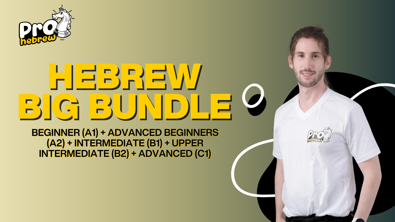 This option gives you access to all five courses at once! Get the Absolute Beginner, Beginner, Intermediate, Upper Intermediate, and Advanced courses and save. Each course builds naturally into the next, so you can progress step by step all the way to advanced fluency. If you're starting your Hebrew journey from scratch and are committed to reaching a high level, this is the perfect opportunity!